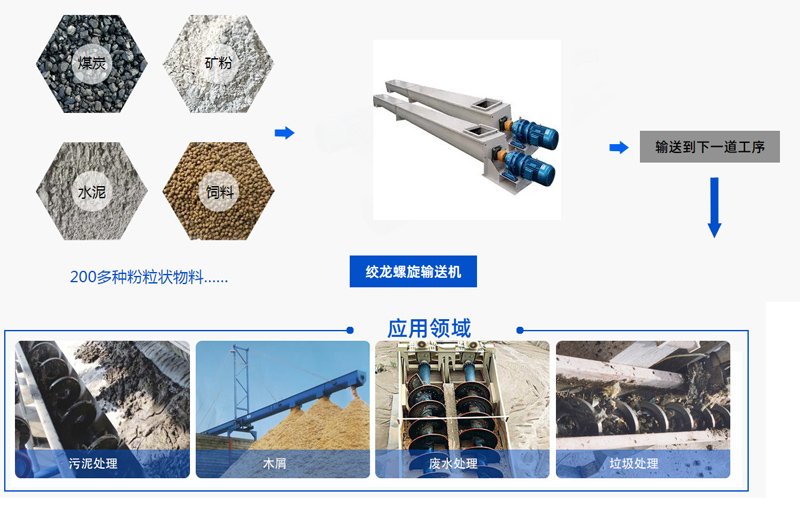 絞龍螺旋輸送機通常水平或略微傾斜使用,作為輸送半固體材料的有效方(fāng)式,包括(kuò)飼(sì)料、糧食、麵粉、玉米、大豆、垃圾、木屑、骨料、汙泥、固體廢物等,每小時輸送量在1.4-458立方米,輸送長(zhǎng)度可達70米。
