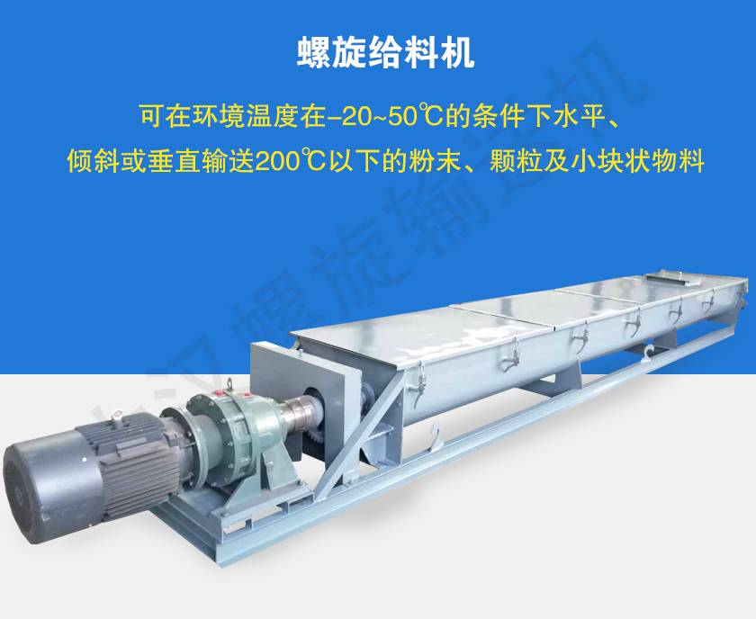 螺旋給料機又叫螺旋喂料機,可在環境溫(wēn)度在-20~50℃的條件下水平(píng)、傾斜或垂直輸送(sòng)200℃以下的粉末、顆粒及(jí)小塊狀物(wù)料。大漢螺旋給料機可根據輸送物料(liào)及應用環境選擇碳鋼、不鏽鋼材(cái)質。